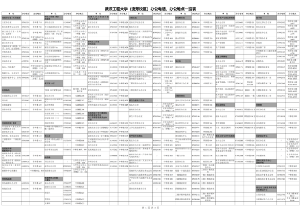 武汉工程大学办公电话办公地点一览表(2025年4月制).pdf